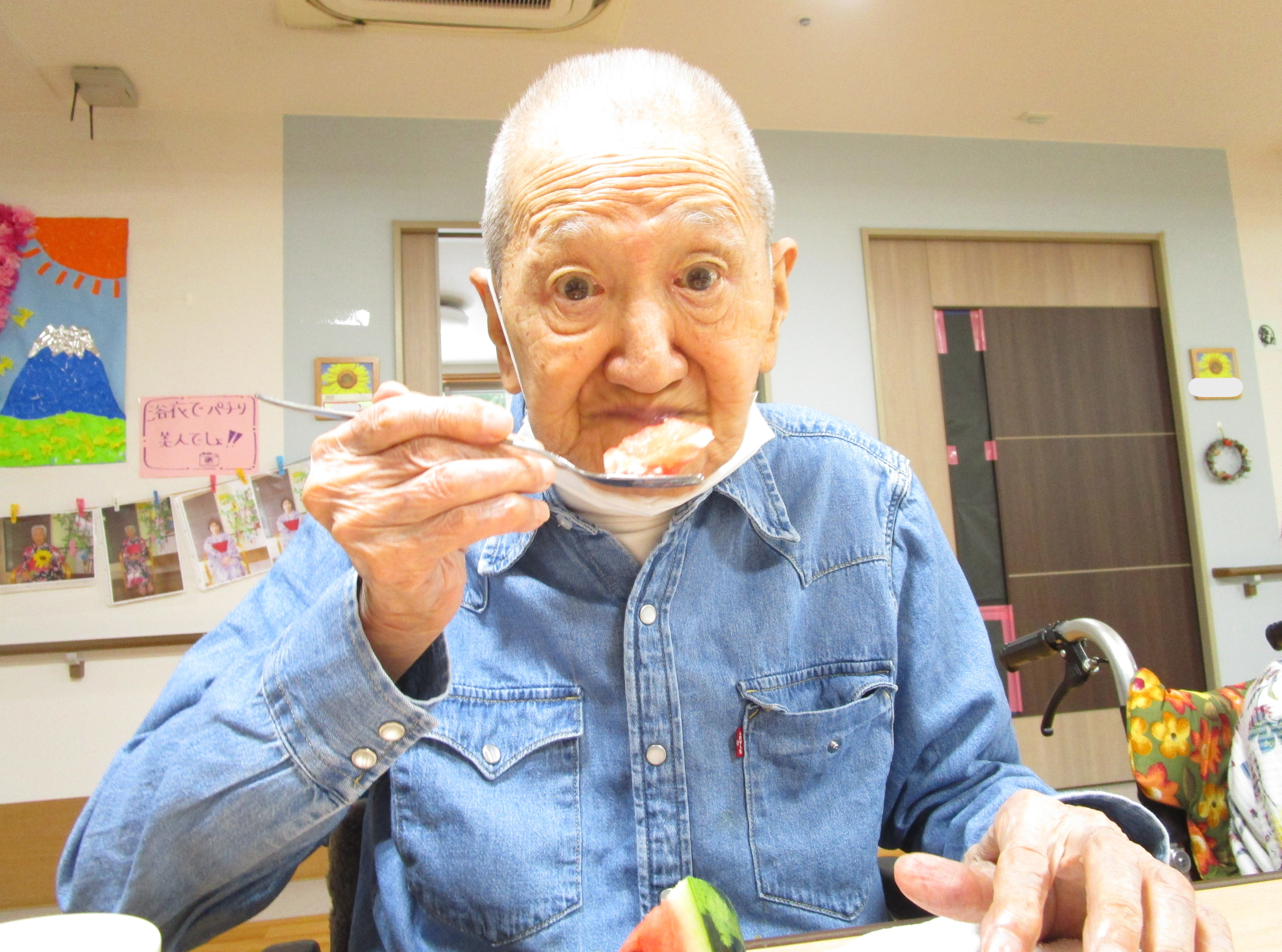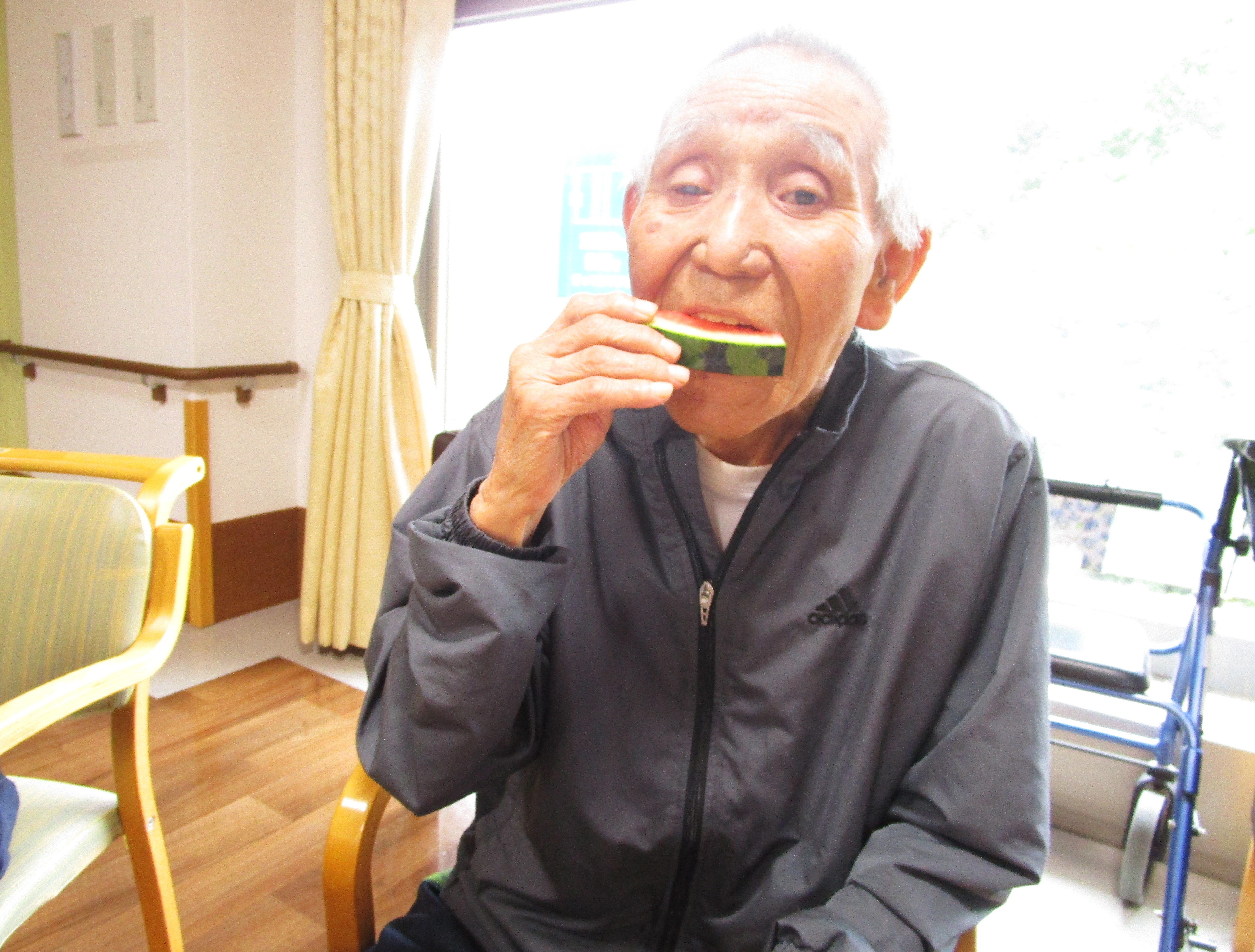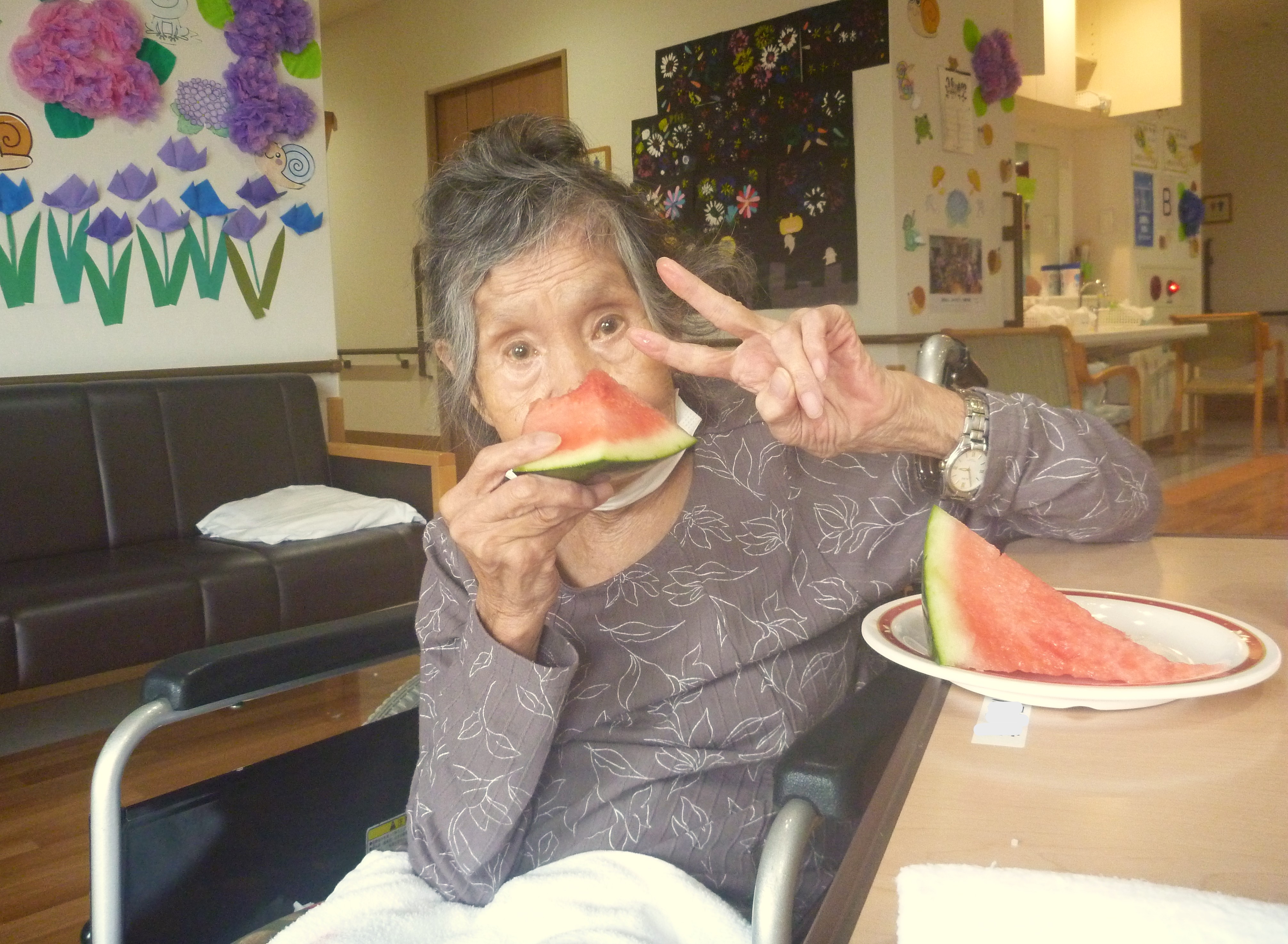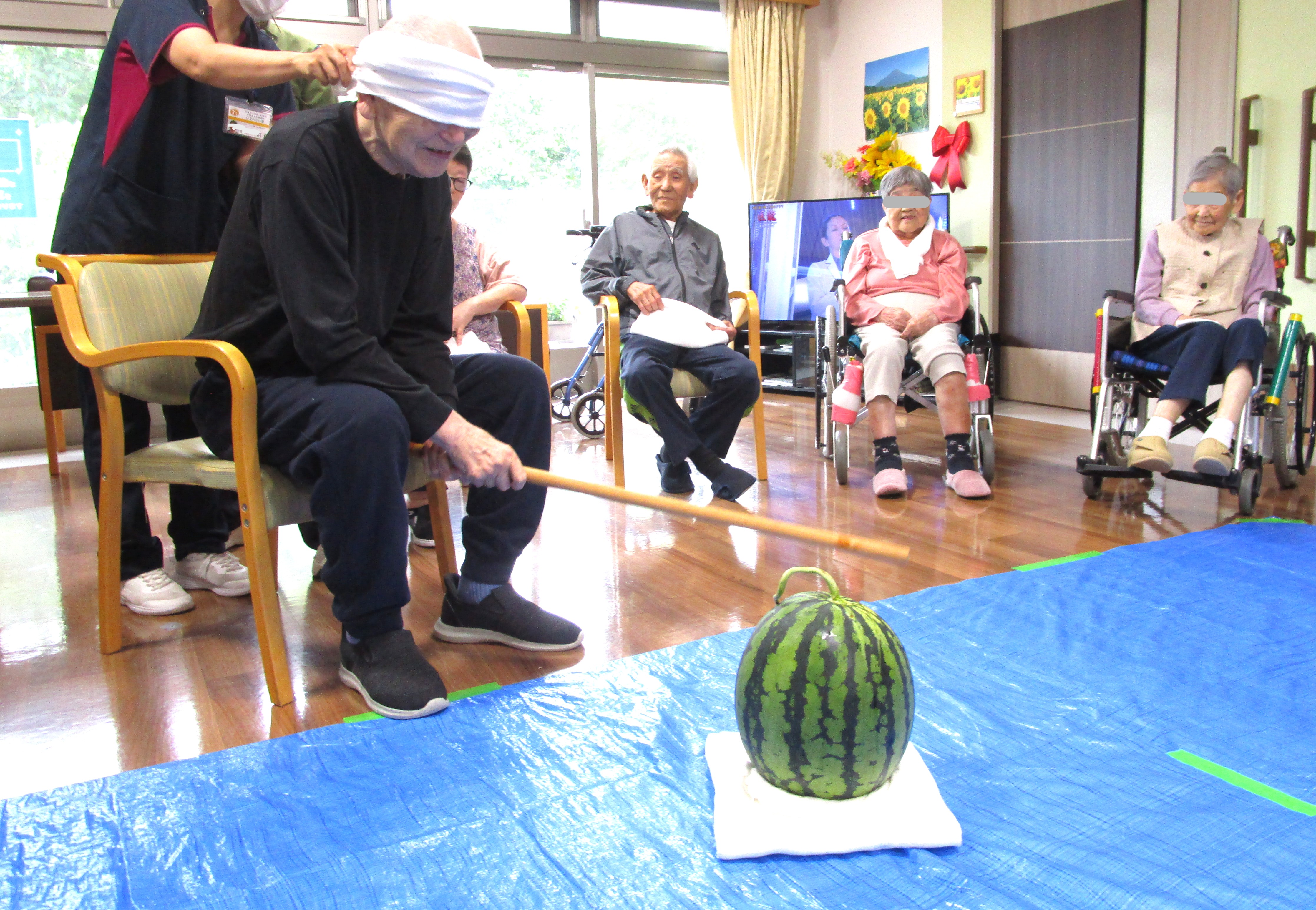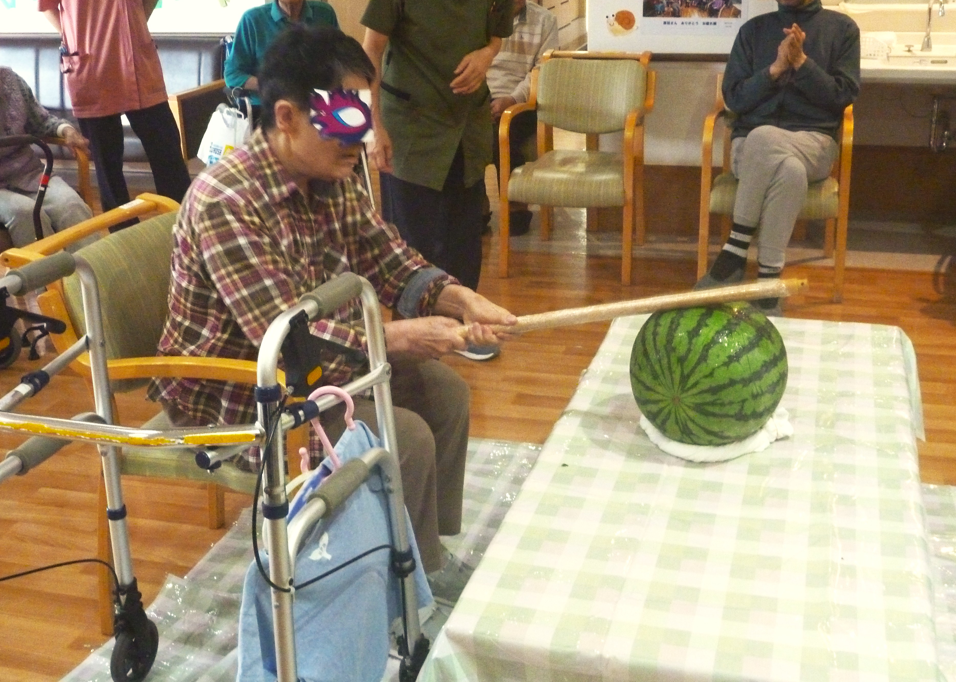 暑い日が続き、梅雨を忘れていましたが入所各ユニットでは、少し早い「すいか割り大会」を開催しました!