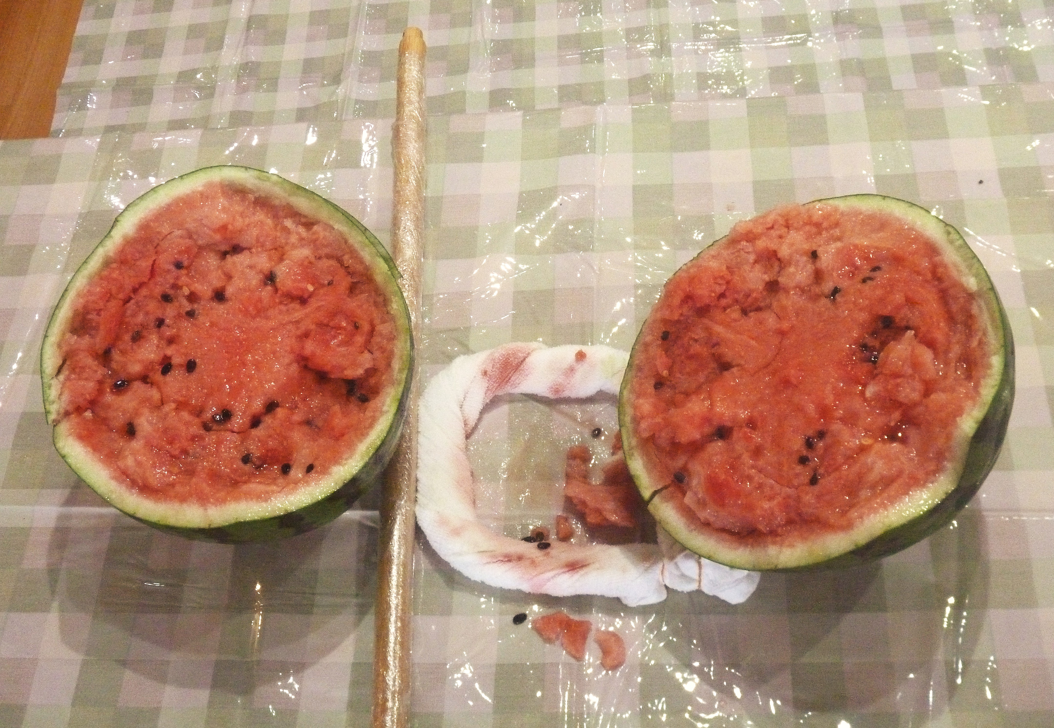 今回はスタッフが特別に長野県波田産のスイカを購入してきてくれたこともあり、大きなすいかに驚きながら「割るのが勿体ない」と話しながら始まりました♪