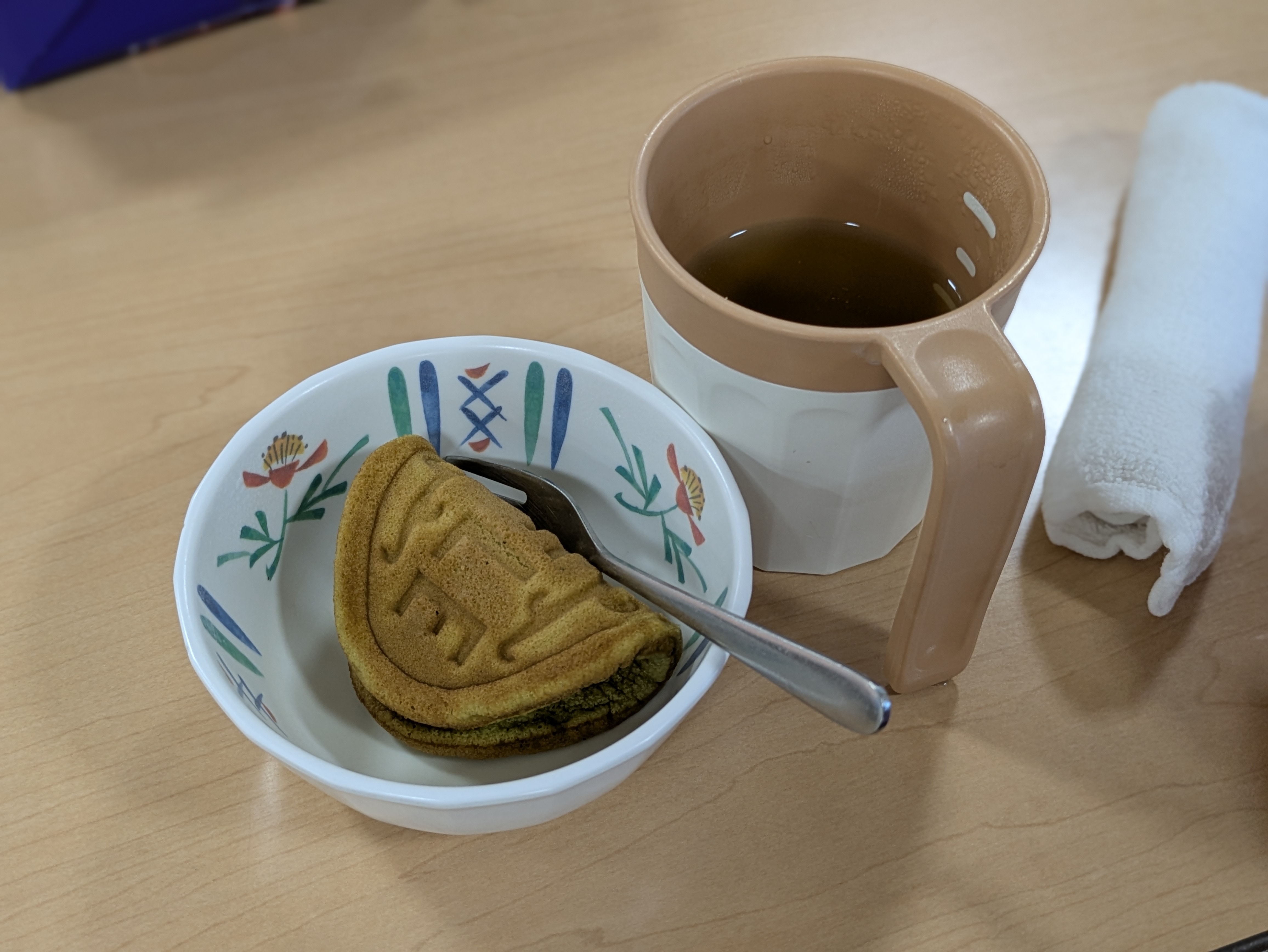 お飲み物は、コーヒー、紅茶、お茶から選んでいただき、身体を休めながら、ほんのり甘いおやつで1日の疲れを癒します。